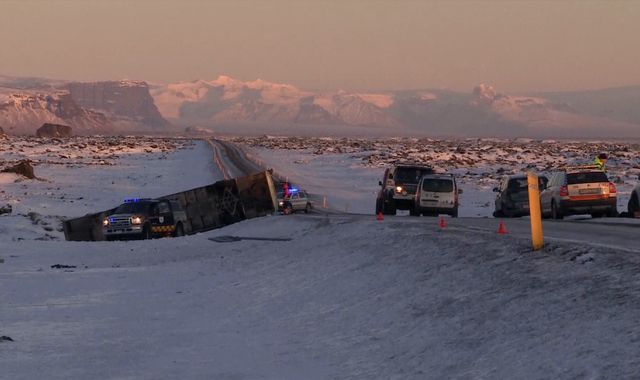 (c) Sky News 2017: One dead and 12 critical in Iceland tourist bus crash